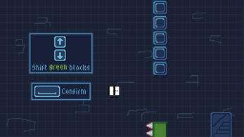 WASD/↑←↓→ - Move yourself or the blocks Spacebar - Jump or disengage W/↑ - Also jump R - Restart level